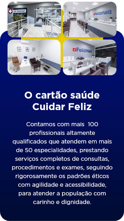 Contamos com mais 100 profissionais altamente qualificados que atendem em mais de 50 especialidades, prestando serviços completos de consultas, procedimentos e exames, seguindo rigorosamente os padrões éticos com agilidade e acessibilidade, para atender a população com carinho e dignidade.